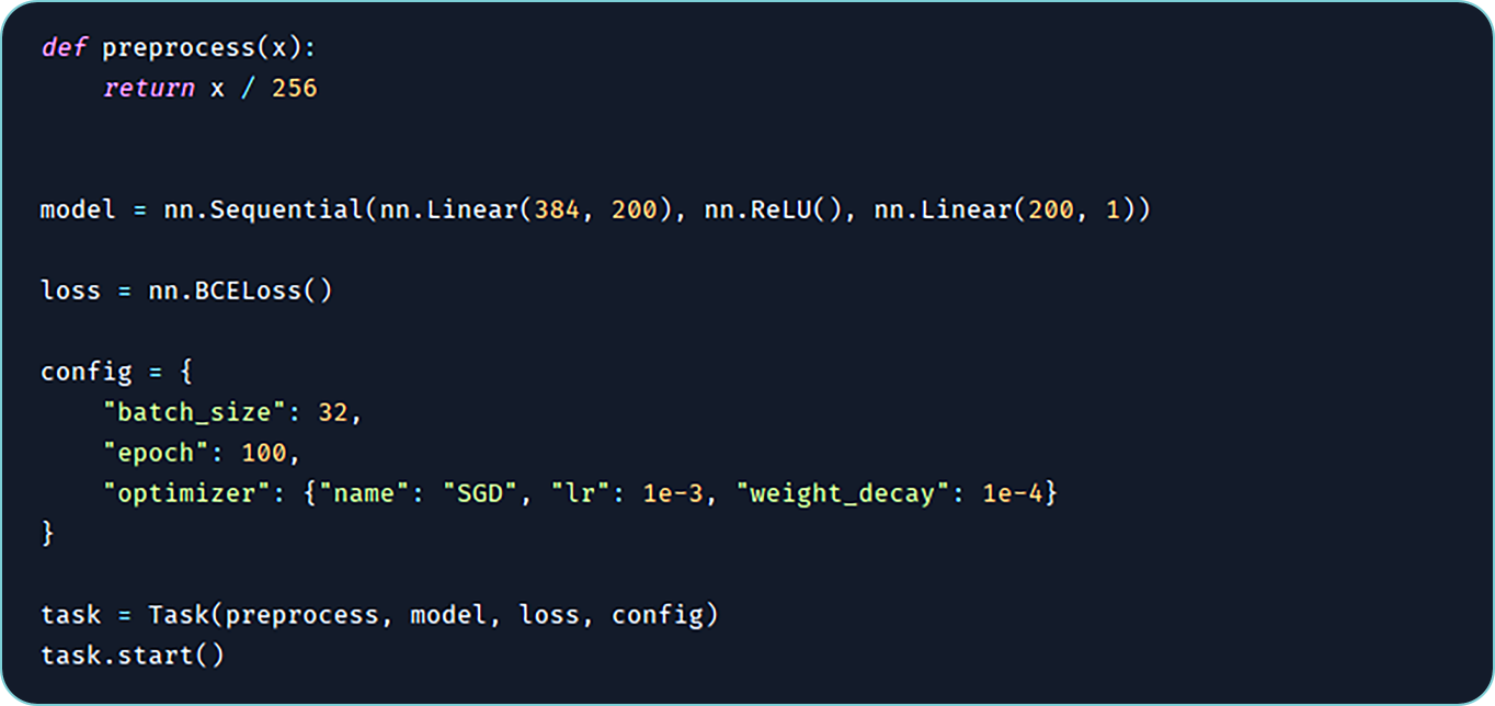 采用在数据/人工智能领域广泛使用的Python语言进行任务编写,开发者可以实现复杂的算法,灵活性高;迁移成本低,已有的代码经过简单改造,就可以直接使用。系统自动对计算任务代码进行合规性检查,以保障数据隐私安全。
